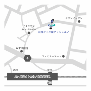 - 荻窪駅北口を出てロータリーを左沿いに進み、タウンセブン前に向かいます